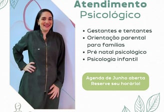 Especialista em psicologia infantil com abordagem TCC, atendimento online e presencial para gestantes, puérperas, crianças e famílias.